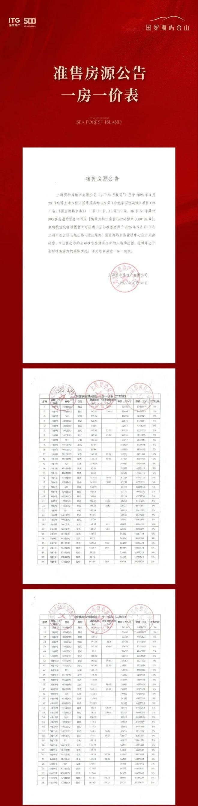 国贸海屿佘山一房一价表: