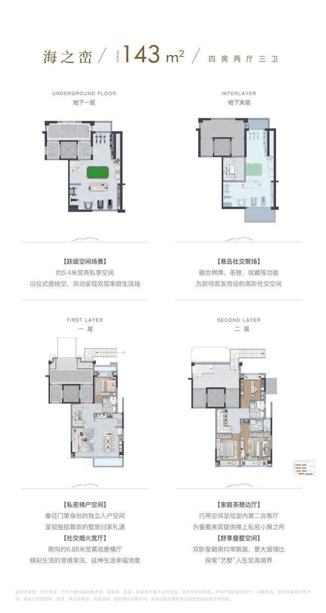 地下一层及夹层空间,可以根据业主需求,打造影音室、健身房、酒窖、棋牌室等各种欢娱空间,为美好生活添加无限可能。