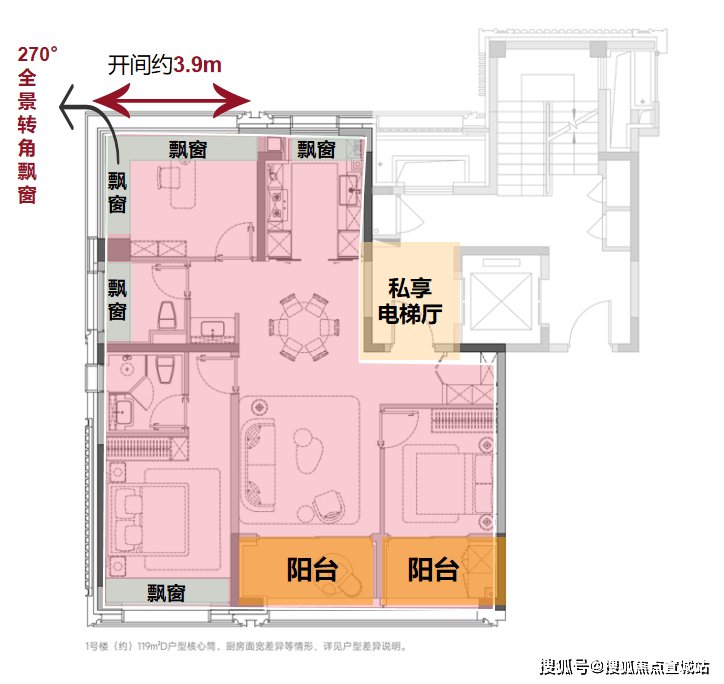 户型亮点:部分户型配置独立电梯厅入户,搭配多阳台与多飘窗设计,部分房型还设有 270° 全景转角窗,可优化采光与观景效果。