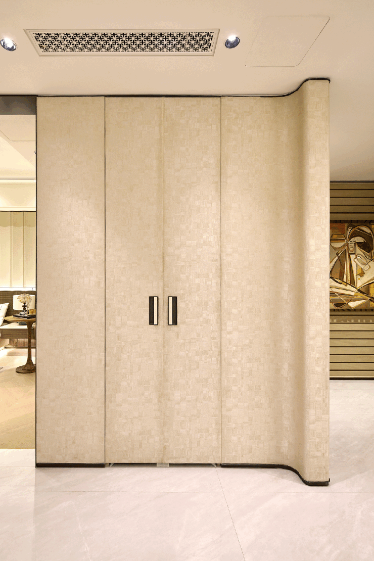 在保利天奕的背景墙岩板定制之上,保利珺园实现定制化的全面升级,打破“千房一面”的桎梏,构建三大定制体系,将定制化贯穿入户、玄关、客厅空间,兼顾个性化需求与整体美学统一,彰显高阶人群的专属品味。