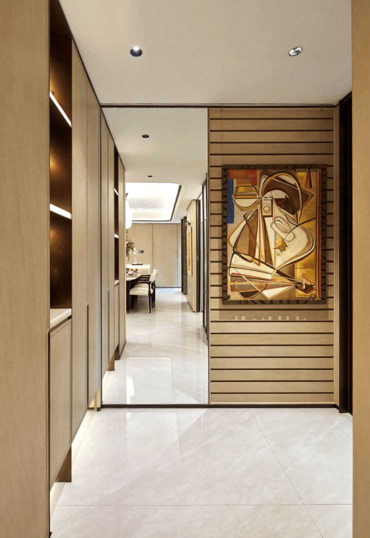 室内入口玄关,保利做了金属吊线预留挂画位,业主可以在这里打造玄关个性化装饰设计,让每个家庭都能根据自身喜好打造专属家居氛围,进一步彰显家庭格调与居住品味