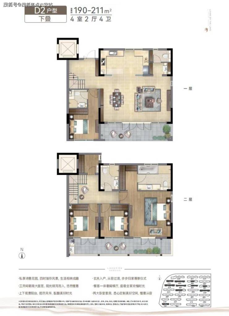 叠院产品:建筑面积约108-230㎡,下叠附赠南北双花园及地下室,上叠配置双露台与阁楼