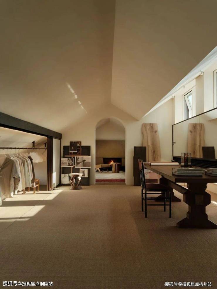 契合中国传统院落居住哲学理念, 以“ 外紧内松 ”空间设计手法,对风貌别墅空间尺度进行当代拓新 ,让空间服务于生活。外紧-通过外部百年巷道肌理活化、建筑错落排布景筑交融,打造美而精的体验;内松-宅院内以多重庭院、立体花园、大落地窗等实现室内尺度拓新,给家人更多停留空间、打造建筑会呼吸的松弛感。