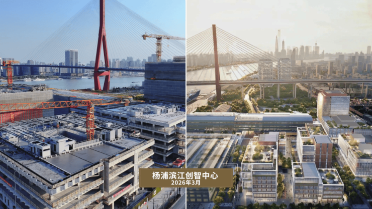 中节能上海首座、美团上海科技中心/杨浦滨江创智中心、哔哩哔哩新时代产业园(施工进度实景-未来效果图)