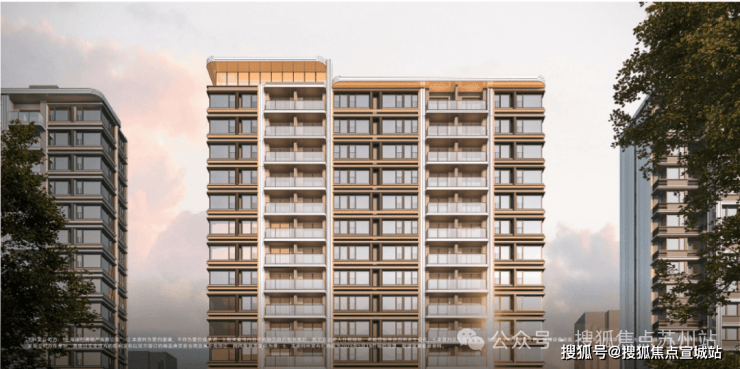 蓝灰色玻璃+仿石铝板+艺术涂料材质,穿插优雅线条,让建筑这张“脸”看起来更高级。One&Only酒店式门头。用雕塑体块、温润弧面和雅致线条,营造具有艺术格调的归家仪式感。