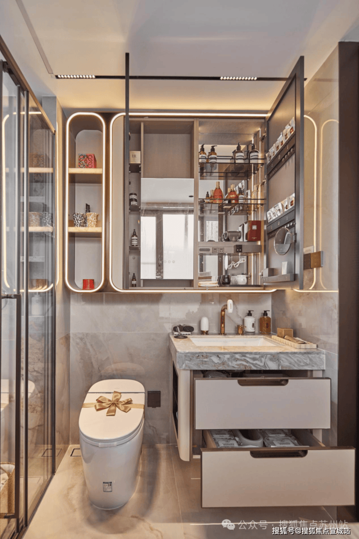 【保利天奕】特别关注到女性的生活需求,专门在卫生间配备了美妆龙头、美妆镜柜、美妆冰箱,采用“顶+面双补光照明”,能把“女本位”需求做到如此细致,目前没有几个项目能做到!