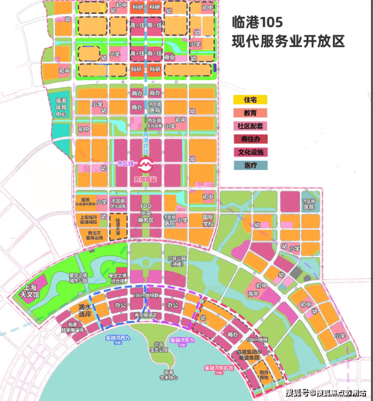 文化艺术岛(在建中):临港艺术中心总建筑面积6万平方米,将设置1500座的大剧院,400座的多功能厅。预计2023年竣工运营。未来将重点引进世界级优秀艺术团体、国际A类剧目演出,旨为提升105板块城市文化生活影响力