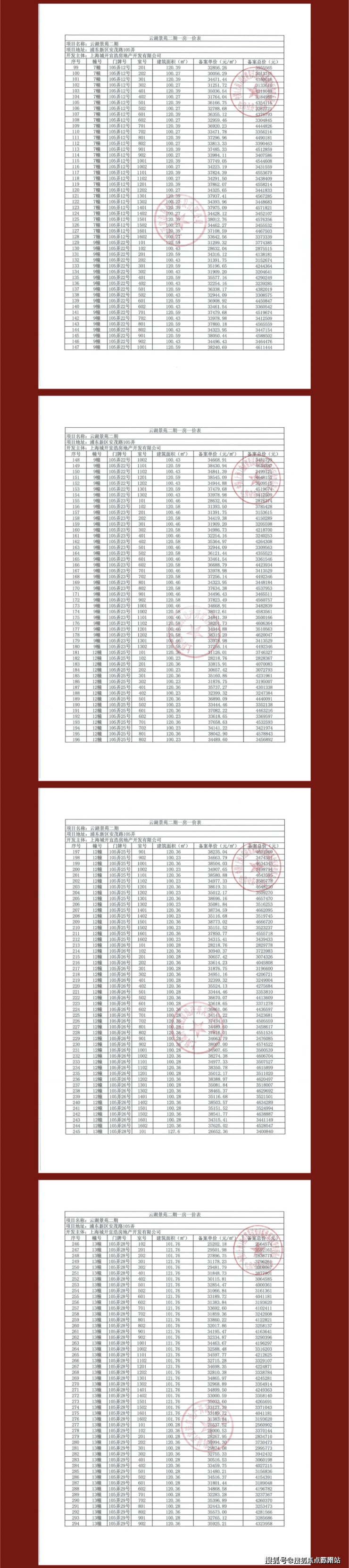 「上实望海」一房一价表