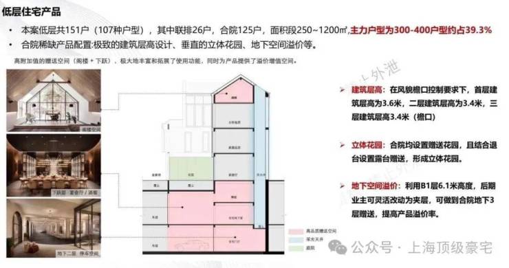 4. 上海风貌层高最高的产品,很多户型层高:地下6.1米,一层3.9米,二层3.6米,三层3.6米