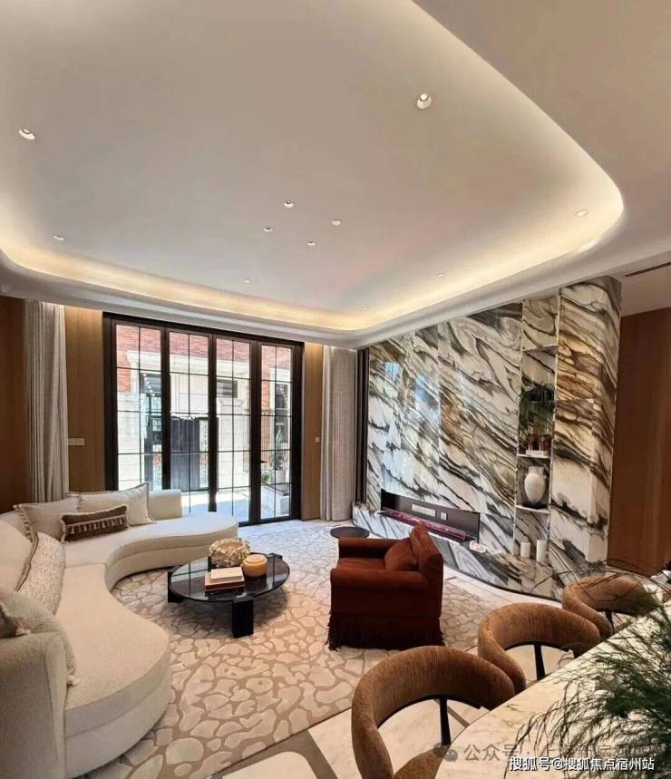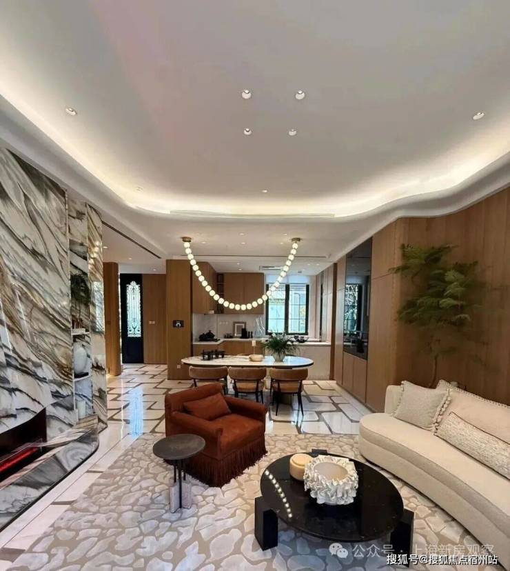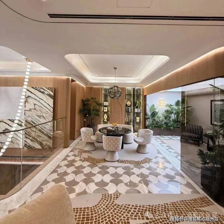社区内设有 上海风情的“三院”、海派精奢的三花园,让优雅的生活氛围随之铺展开来。 下沉庭院整体长约18米,进深约9.5米,庭院的上下景观通过水帘相连通,中间结合有着层层叠水的水景,搭配水晶砖的景墙,将品质感拉满。