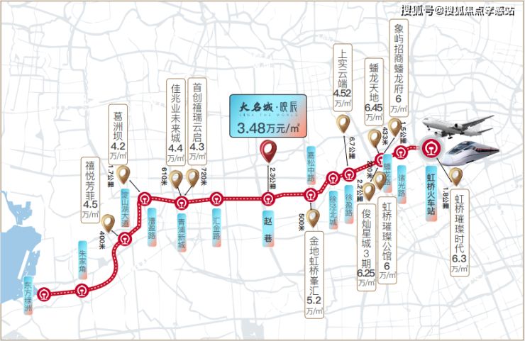 【轨交17号线】项目距赵巷地铁站约3km,6站直达大虹桥交通枢纽:
