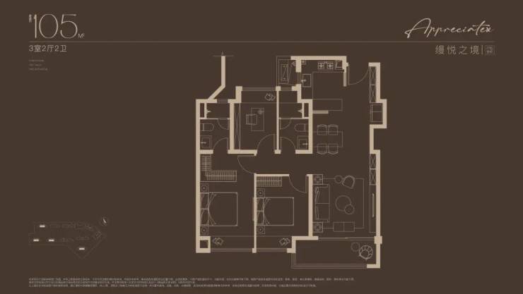 建面约105㎡3房户型,总价400万级即可上车!堪称同等总价段的改善天花板!三开间朝南, 约9.6米大尺度南向面宽 ,最大程度揽光入室;客餐厅一体化 ,连接厨房和南向阳台,动线流畅,也是更大的欢乐聚场;创新研发S墙设计,预留冰箱专属位置,释放厨房使用空间 ;主卧套房设计,奢享独立卫浴和衣帽间,尽享尊崇。