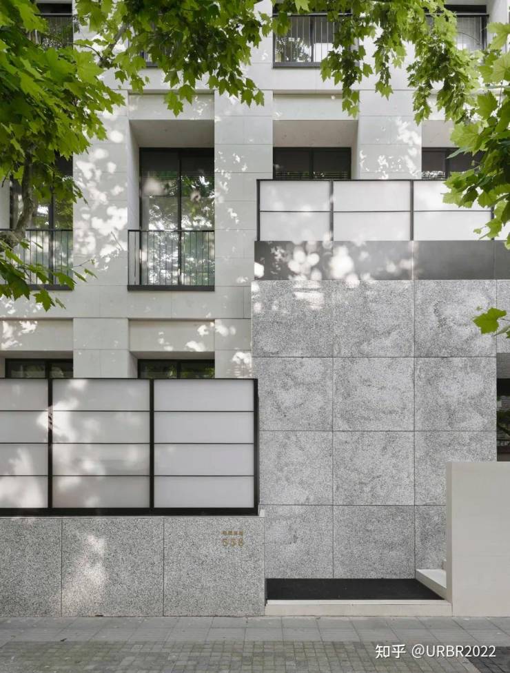 无间设计选择让建筑立面改造顺应这条街的呼吸,以简洁的线条、考究的材质和光影的运用,使建筑与梧桐树影、街巷氛围自然交融。