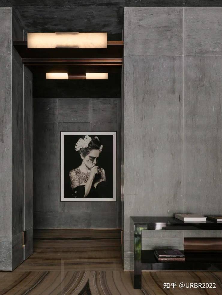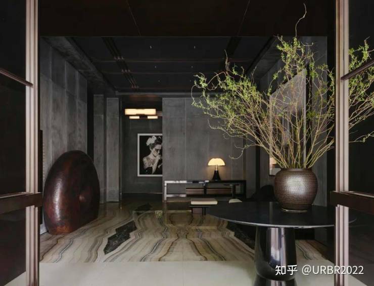 家具粗粝而温润,似记忆中被反复抚触的老物件,带着时间沉淀的温度。粗粝的石材沉稳克制,温润的木质收束情绪。使人联想到安东尼奥尼《红色沙漠》对环境与心理感知的塑造——空间是情绪的投射场,人在不知不觉中被空间的叙事所包裹,最终沉入一场无法割裂的感官体验。