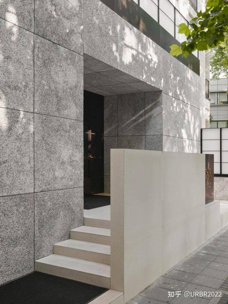 基座部分,无间设计又以雕塑般的水洗石墙面,将建筑的节奏与秩序变得有情趣,营造出过渡的层次,从外向内缓步漫游去感知它,探索它,体验它,城市喧嚣也变得静谧起来。