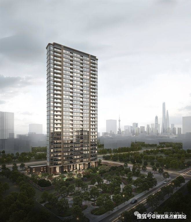 建筑外形上,采用海派现代风格,蓝灰色玻璃、仿铜色铝板、深色石材搭配,将绿城产品的高辨识度再次呈现。