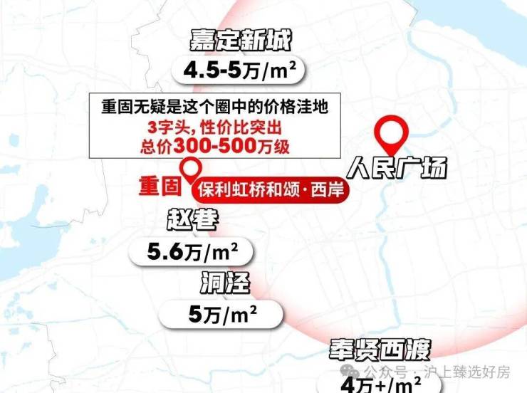 若以市中心为圆心,重固与赵巷、洞泾处于同一半径范围内,但后者房价已达5-5.6万/㎡, 而重固仅3字头