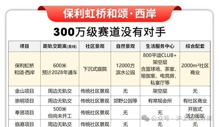 原因很简单:保利虹桥和颂·西岸在 产品、社区、周边配套、板块能级 上,全面碾压了当前上海同总价段的所有新盘,是毋庸置疑的 超规格王者!