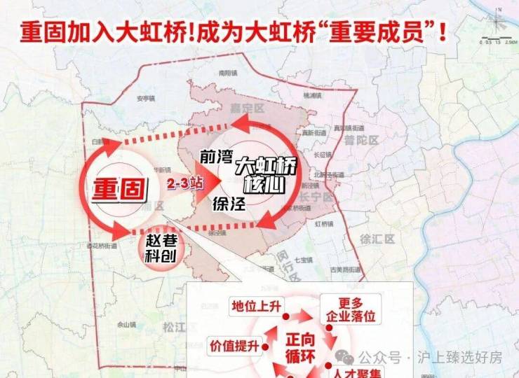 随着被划入大虹桥,重固不再是孤立于核心区域之外的存在,而是真正融入到大虹桥发展中,其定位也从居住板块跃升为大虹桥发展辐射带上的重要成员,获得战略级资源倾斜,这一定位的质变成为撬动区域发展的关键支点