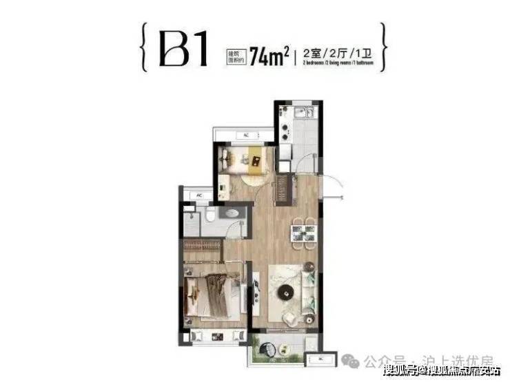 在售户型面积:建面约74㎡、73㎡
