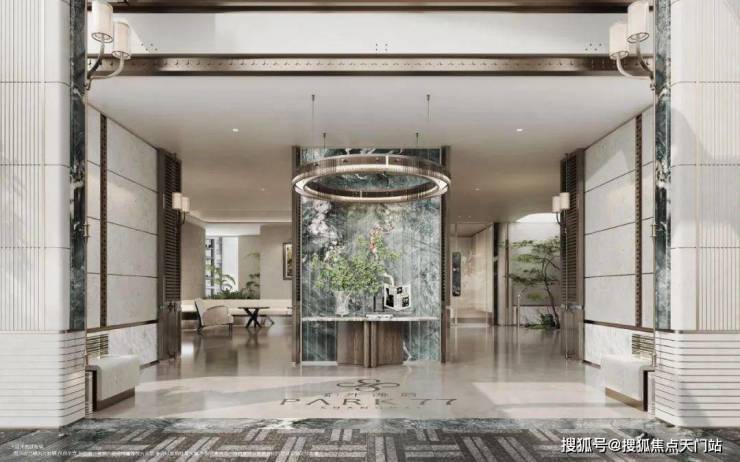项目借鉴高奢酒店的设计,将“仪式感”与“松弛感”完美融合——以酒店式艺术门廊作为归家起点,从鎏金翡绿的奢石饰面,到极具艺术感的迎宾雕塑,再到通透雅致的艺术玻璃景墙,搭配光影流转的回环天厅与兼具格调的雅意社交天厅,当迈入这道门廊的瞬间,奔波一天的疲惫随之消散,专属于归家的松弛感与归属感即刻拉满。