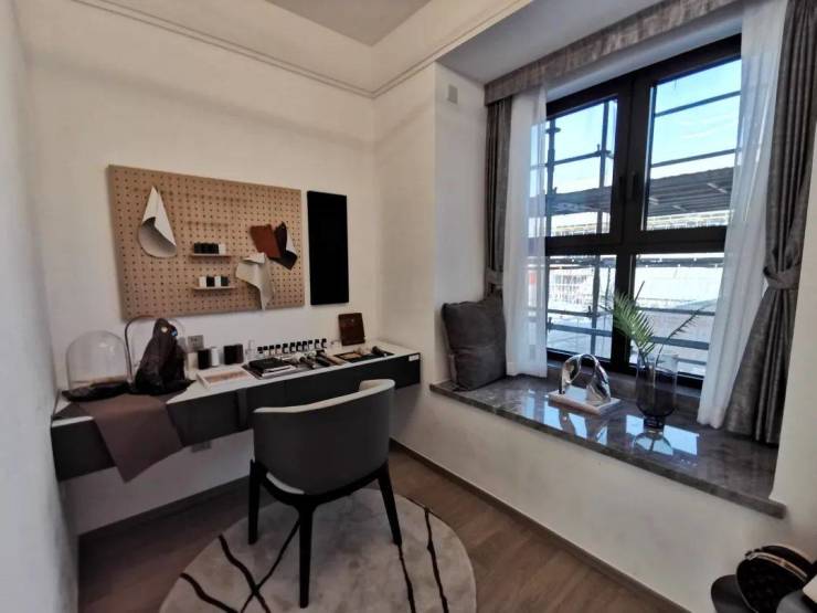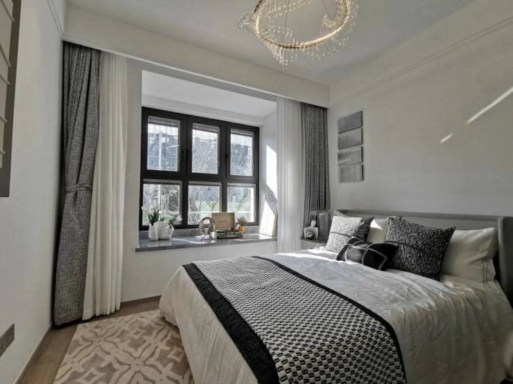 U型厨房,操作台与厨房动线符合人体工学设计,转身之间,洗、切、烹、炒流畅便捷,与餐客厅形成一条笔直的居家生活动线;三间卧室全附带飘窗,拓宽了景观视野的同时,增加了实际空间使用率;南向主卧做了带独立卫生间的套房设计,仪式感和私密性更强。