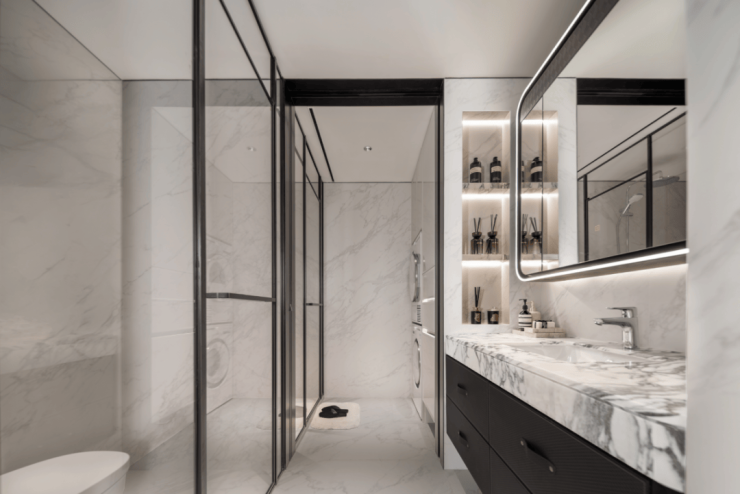主卧套房的L型衣帽间与卫生间,公卫四分离设计,在保证“大”尺度的同时,更让每个人的生活需求都被妥帖照顾。