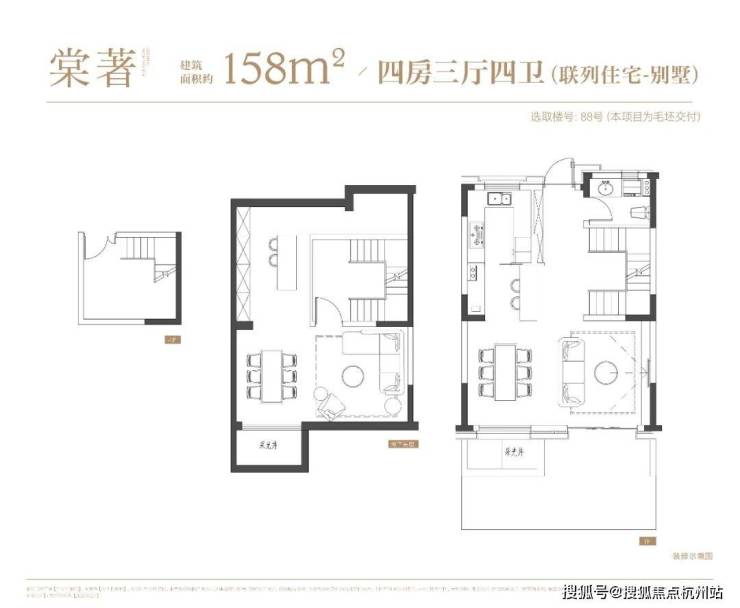 联排别墅主打约158-165㎡地上三层产品,带露台和相对独立的使用景观分区。