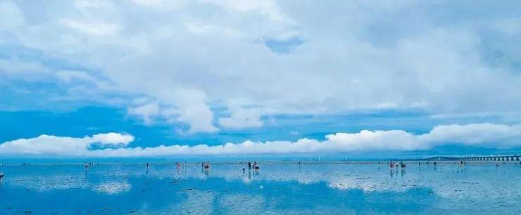 伴着晚风徐徐吹来,海水退潮,露出一片辽阔滩涂,残留着浅浅水洼,映衬出别样的东海之美。孩子们在此戏水踏浪,挖沙子抓螃蟹,俨然童话世界。