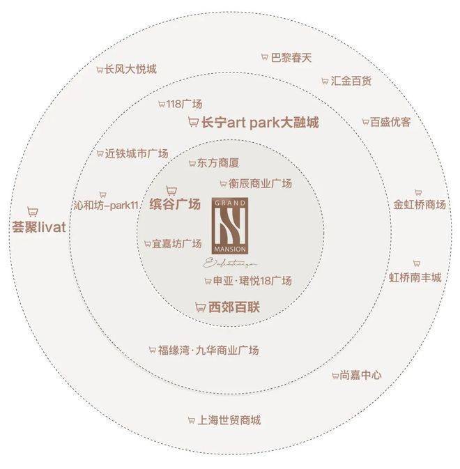 临近缤谷广场、百联西郊购物中心,东方商厦等老牌商业,3KM范围内涵盖金虹桥商场、上海荟聚、虹桥南丰城、尚嘉中心(LVMH集团投资)等超106万方商业综合体