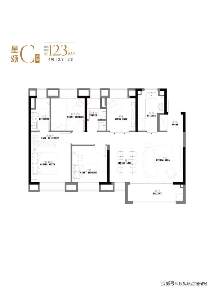 首先,项目主力户型是建面约103-107㎡3房2卫,此外还有123㎡4房2卫、129㎡4房2卫。