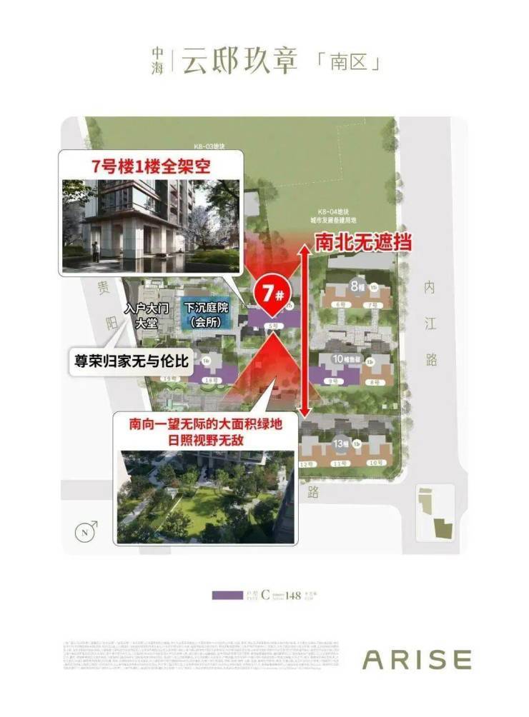 仔细看西边这条动线,从进小区到进大门,纵览项目所有精华社区配置,来访客人必然惊叹其品质,这一条无比尊崇的归家路线当真是楼王专属!