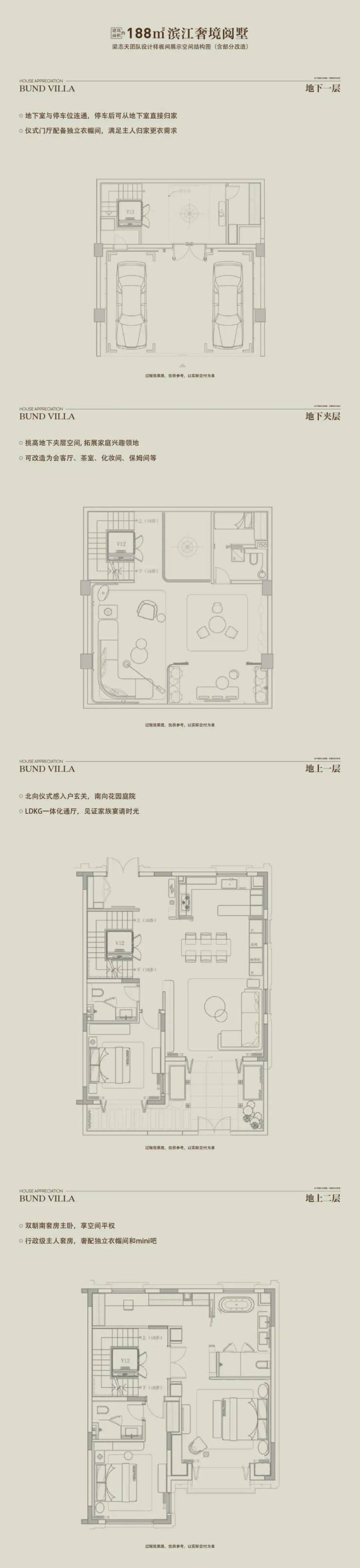 320㎡独栋墅品:拥80㎡私家庭院,部分房源可远眺江景,预留电梯井道与泳池位置,阁楼可改造成艺术工作室,是塔尖人群的传世之选。