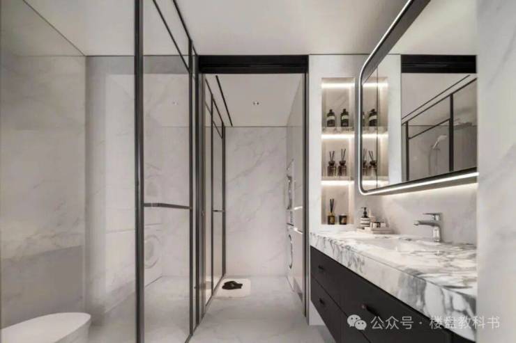 外滩瑞府售楼处电话:400-1010-064☎【重要提示:首次来访前需提前来电预约参观】大理石地砖的铺装工艺精湛,近乎看不出拼接缝,呈现出浑然一体的效果;吊顶采用悬浮顶设计,周边用金属包边,层次感十足;卫生间墙面不乏弧形处理,地板纹路的拼法也各有不同,通过复杂的工艺,只为呈现更优的视觉效果。