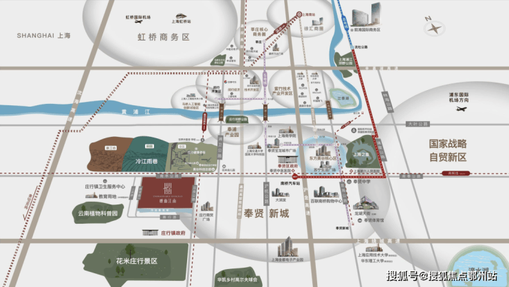 其中,南枫线规划里程约93公里,是南上海东西向大动脉,届时将串连起临港自贸区新片区、奉贤新城以及金山枫泾等区域,它会经过「大名城·映雨江南」所在的庄行镇。年初奉贤区的某次工作报告中明确指出:实现南枫线5年内开工!
