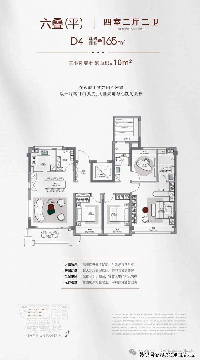 项目主力产品为123㎡洋房、149-165㎡叠墅、190-220㎡联排,全系大面宽、短进深、全明通透、多套房设计,得房率远超市场同类产品。精装标准约 3800 元 /㎡,甄选博世、杜拉维特、高仪、霍尼韦尔等国际一线品牌,标配中央空调、地暖、新风系统。