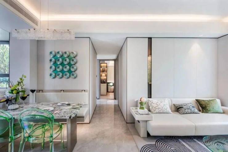 还有一种是竖厅风格,经典的飞机户型,房间分列客餐厅两侧,互不干扰,各有各的隐私空间。