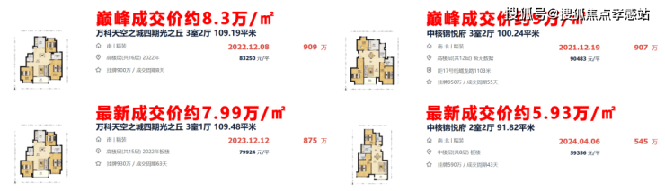 然而同区域地段更好的中核锦悦府,巅峰成交价超过9万/㎡,如今最新数据中有一套中楼层房源5.9万/㎡成交,对比初始约6万/㎡新房均价,甚至已经“破发”!