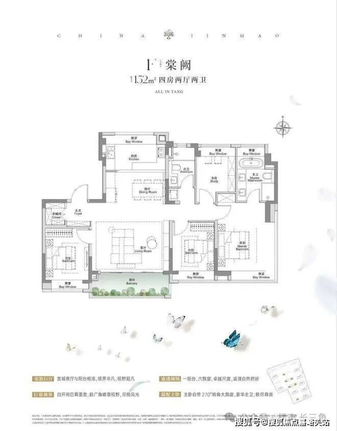 足足2个阳台+4个飘窗,2个卧室,1个卫生间,1个厨房全部“扩容”,尤其是 主卧270°全景飘窗的设计非常少见 ,未来窗外的胜境将一览无余。