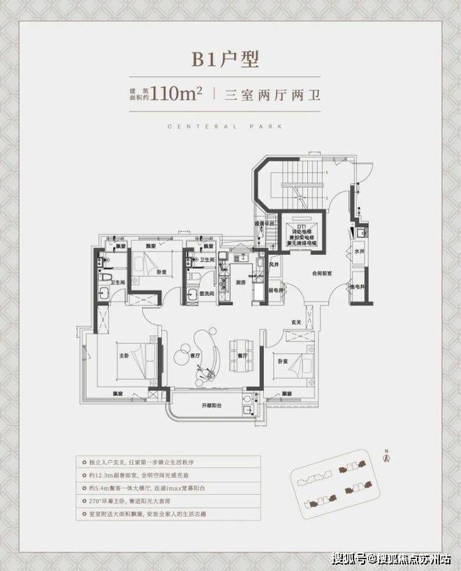 建面约110㎡中间套竖厅户型,同样也是标准的南北通透飞机户型,整体室内的采光、尺度感、通风都相当出色。非常适合一家三口、年轻夫妻的全生命周期需求!中环铂樾售楼处营销中心:400-8787-740中环铂樾售楼处电话/地址☎:400-8787-740(开发商热线)