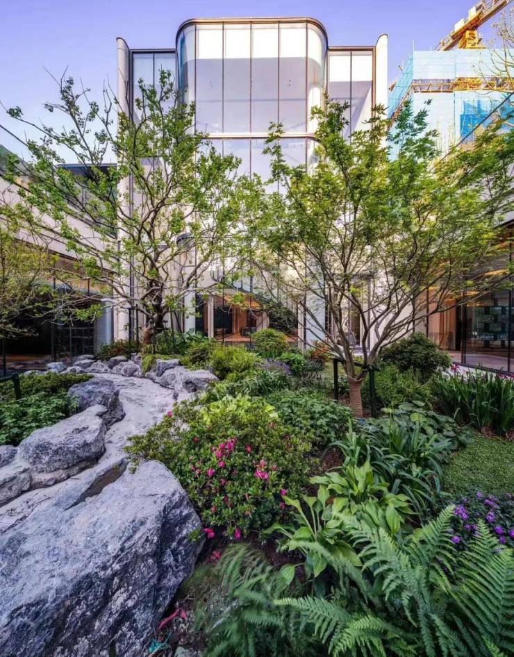 除此之外,由紫薇、香橼、朴树等高大的灌木所营造的下沉花园闲适空间,