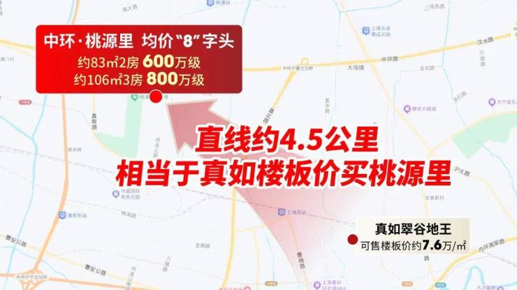 另一方面,桃源里与真如地王直线仅4公里+,相当于拿真如楼板价买智创城品质住宅!