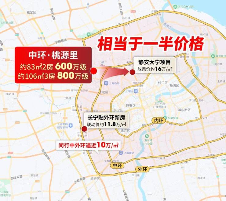 第三,同环线看,长宁中外环项目近12万/㎡,闵行中外环项目近10万/㎡,更别说徐汇了,桃源里价格优势一目了然。