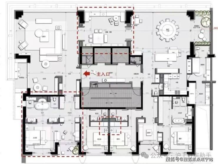 建面约195㎡北向面宽达到约12.5米,堪称IMAX观景面,和黄浦某顶豪275户型面宽数据相近。