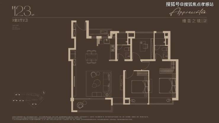 改善宽奢3房!标准的长面宽、短进深户型,再加上大宽厅的设计,采光面非常出众。