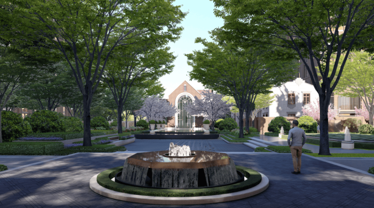 上海壹号院还拥有丰富的景观及生态资源,项目外部双公园环绕,内部约 1.8 万方海派公园,十字景观轴串联多元景观,四季景致各异,步移景换,这样的配置在寸土寸金的新天地旁尤显珍贵。