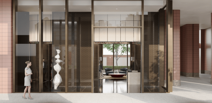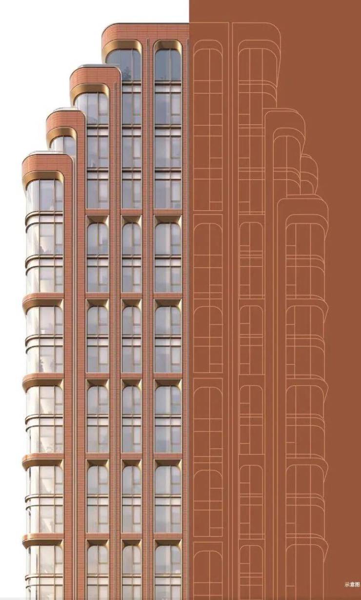 用Art Deco常用的竖向线条来解决高层建筑的挺拔感、用红色陶板来勾勒出海派老洋房的红砖意象。同时,建筑立面采用大量高性能系统窗+大面积Low-e玻璃,节能环保的设计理念,让住宅接近零能耗。