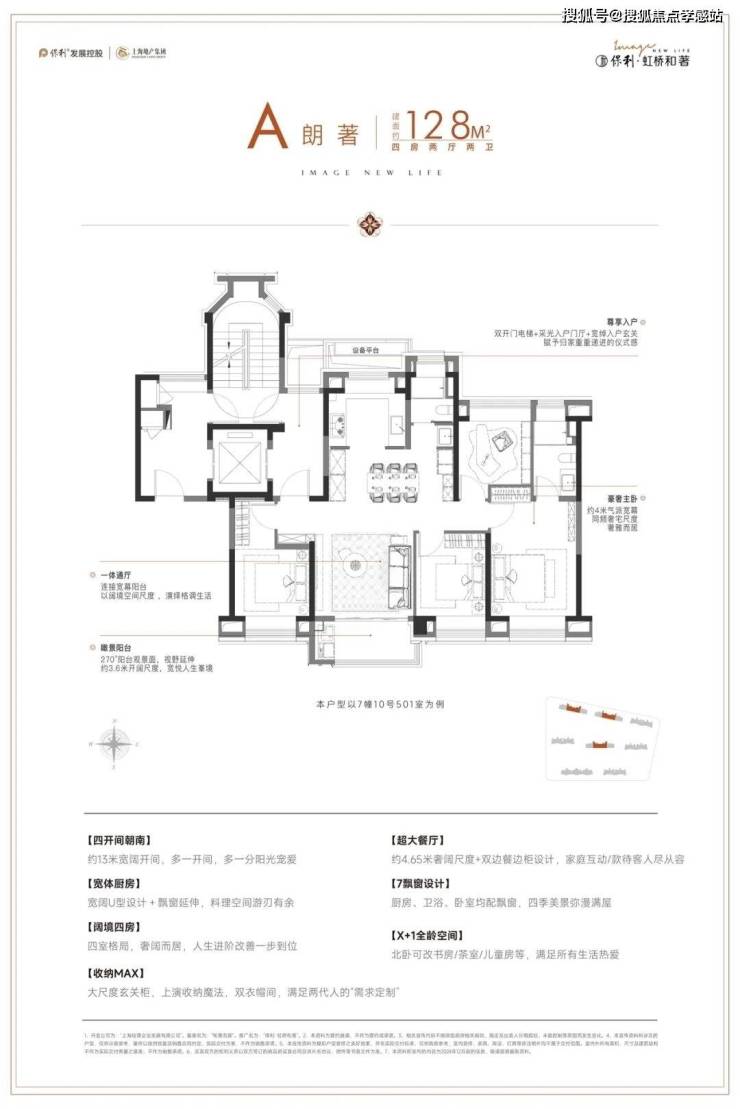 除104㎡明星户型外,项目还有少量128㎡稀缺四房在售: