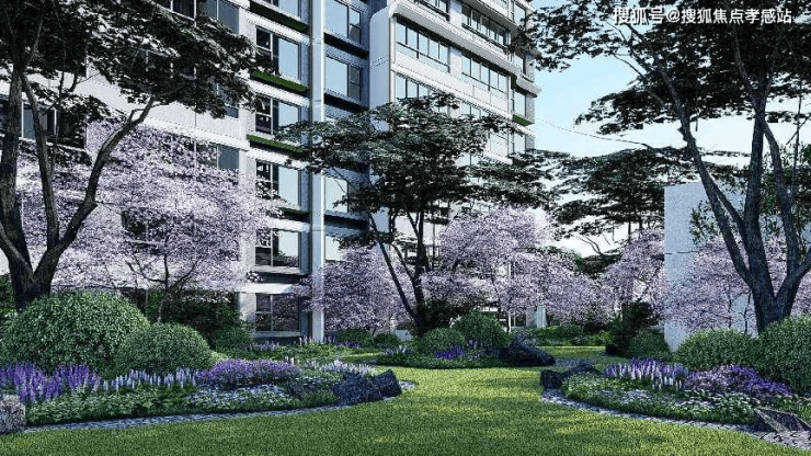 采用经典的中轴对称设计手法,社区内以中央景观轴+中央景观花园为核心,规划“一轴、一心、一环、五园”的景观布局,打造了美学会客厅,阳光大草坪,下沉式书吧、环形跑道和五个楼幢景观花园等多个主题景观组团,打造社区人性化、景观功能化、配套全龄化的全维度生态住宅。