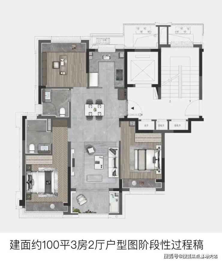 ①建面约100㎡3房户型:
